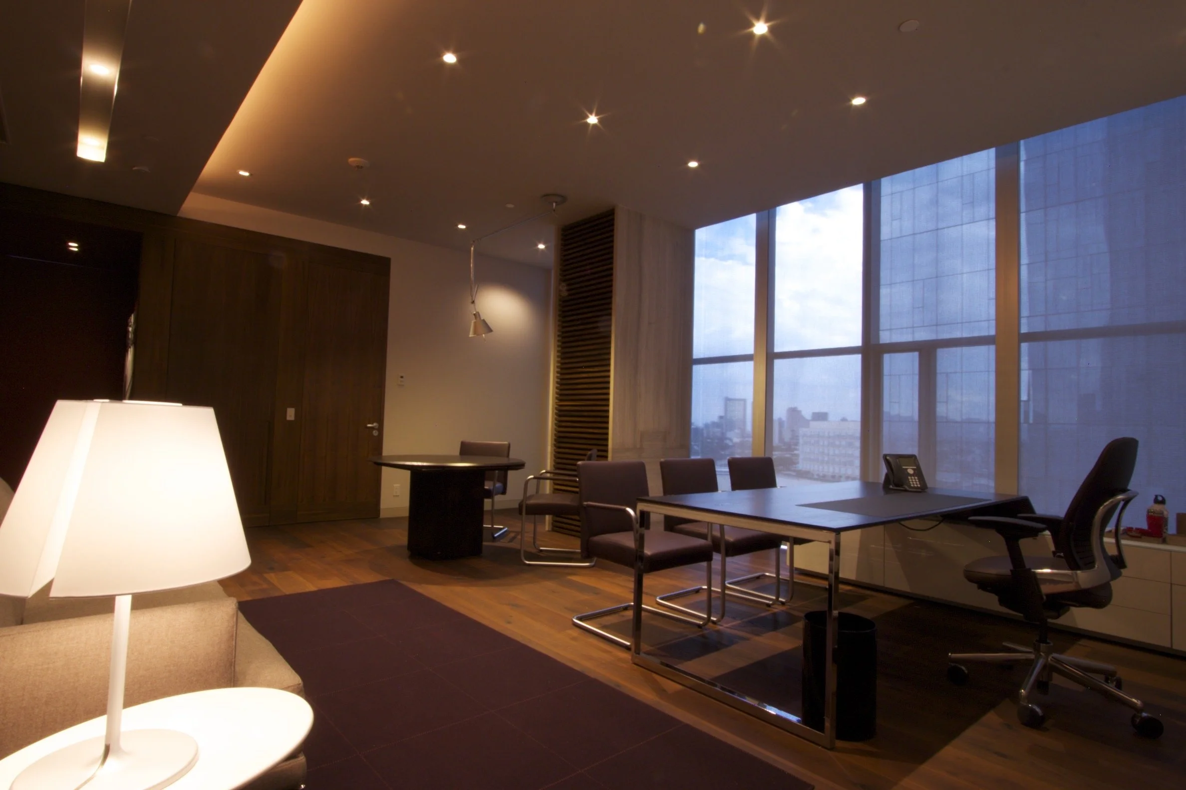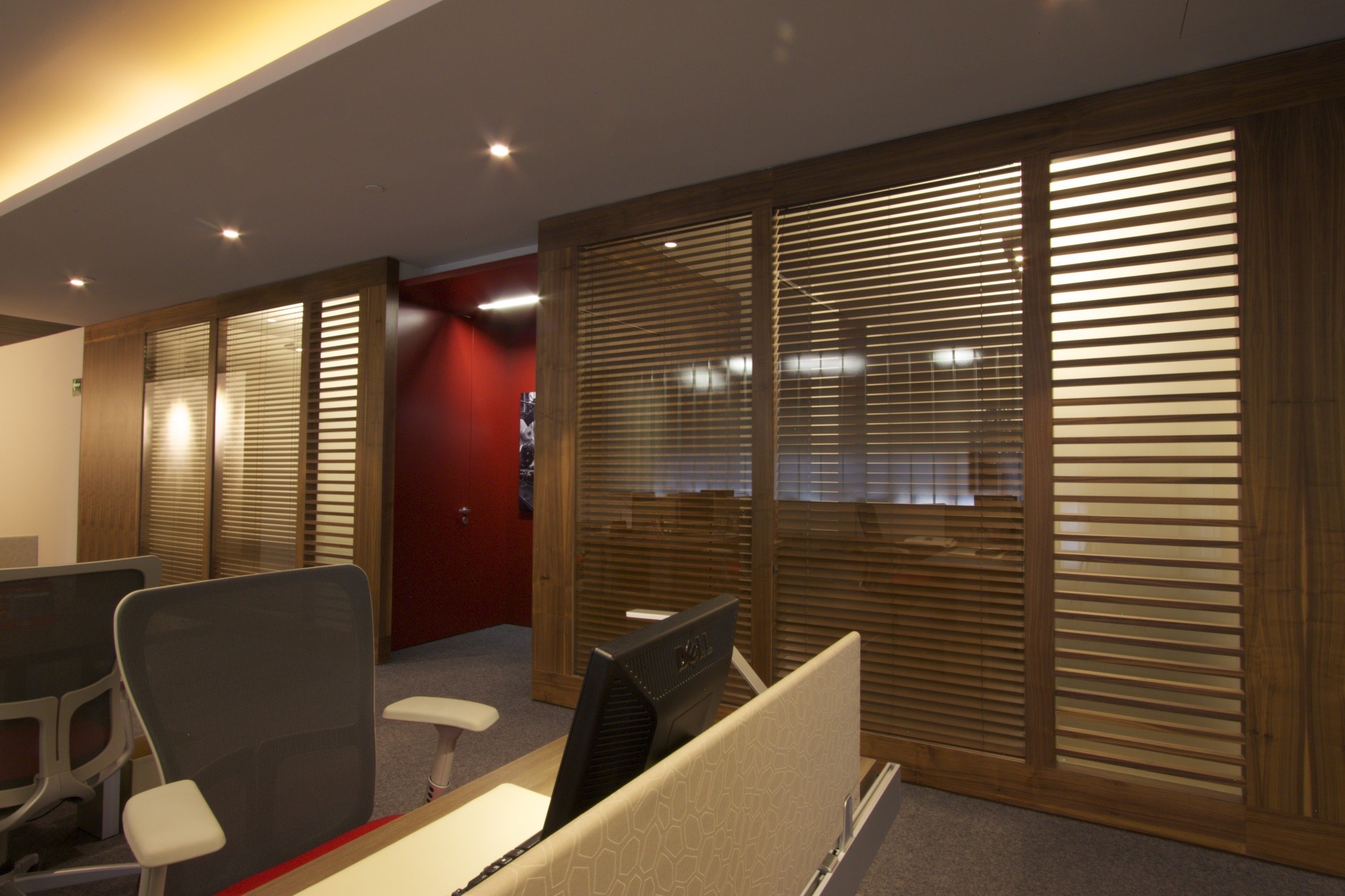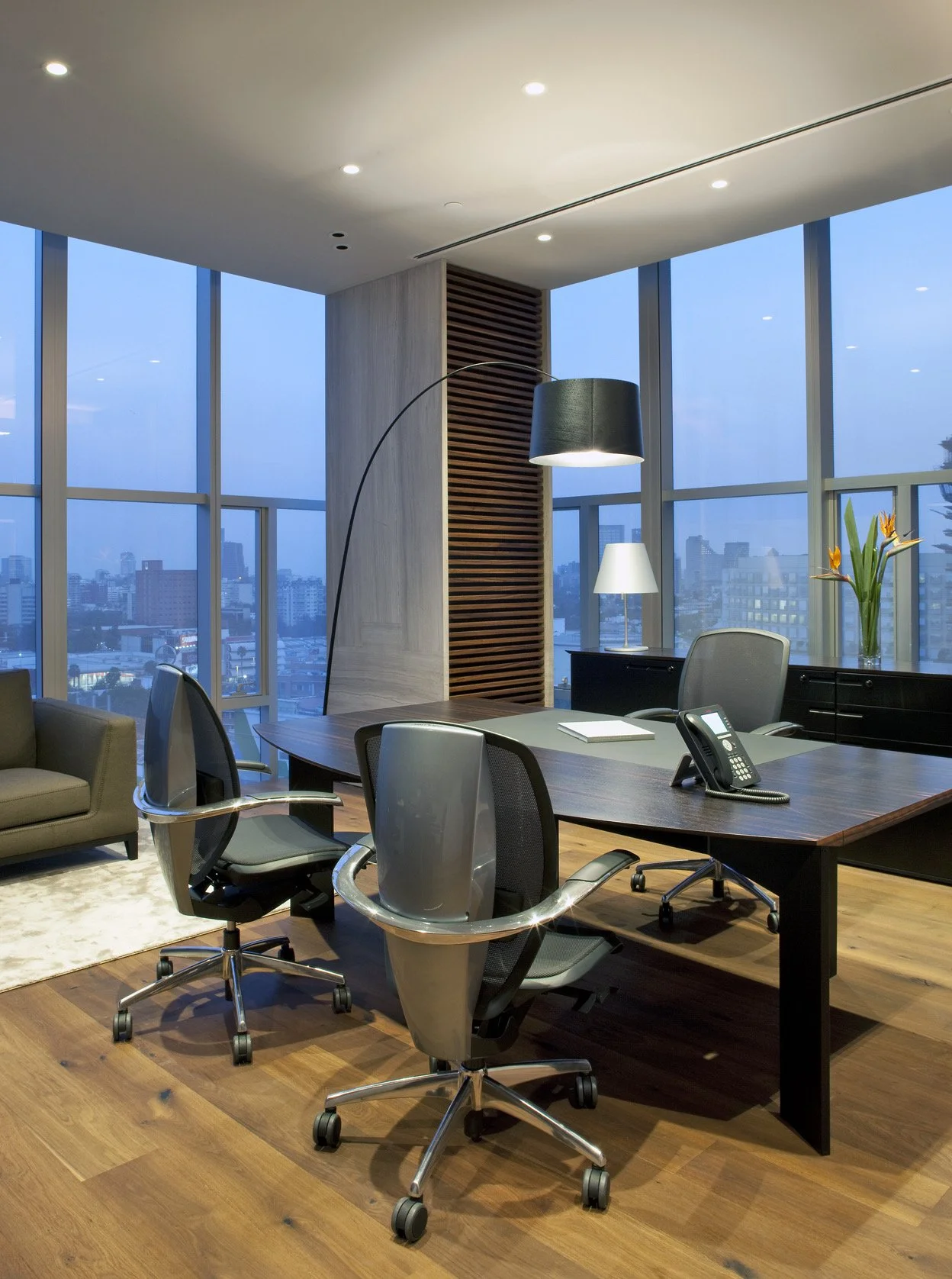 Los privados de los socios tienen acabados de aspecto más residencial para lograr un confort, en todos los aspectos, para los socios y directores generales, en todos los casos la privacidad se puede ajustar con persianas de madera para bloquear o permitir las vistas de adentro hacia afuera y viceversa.